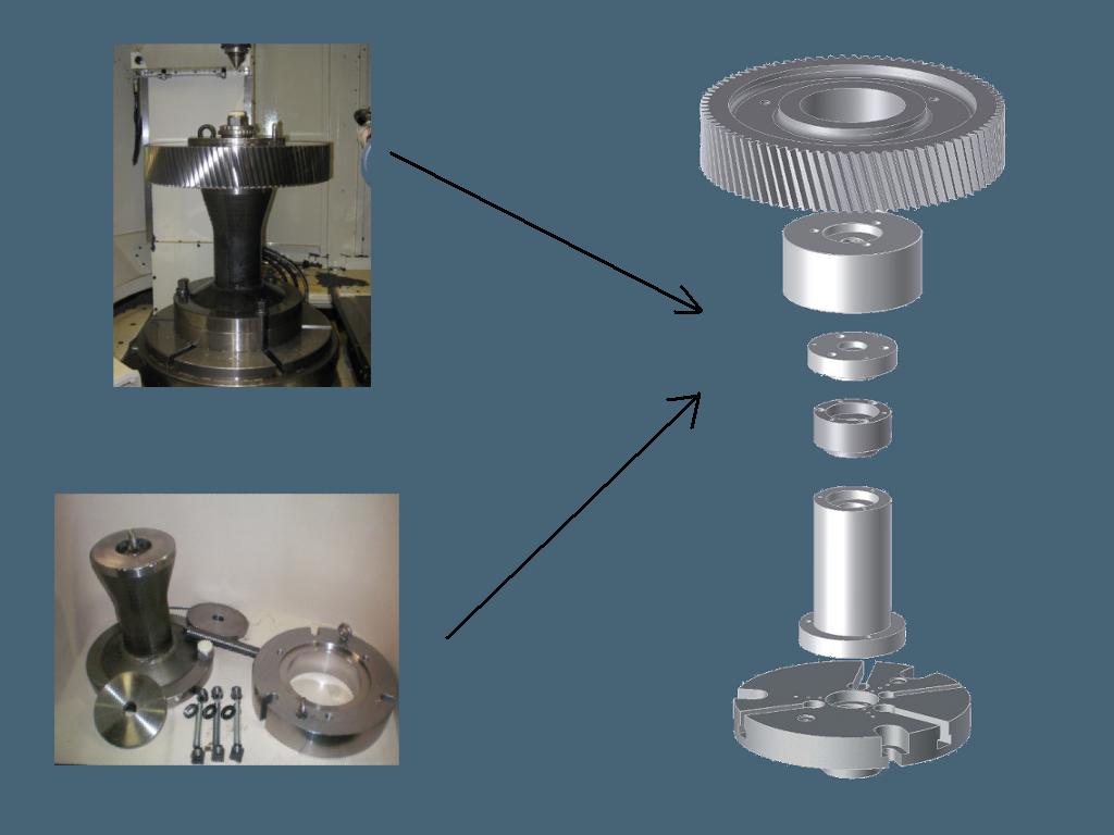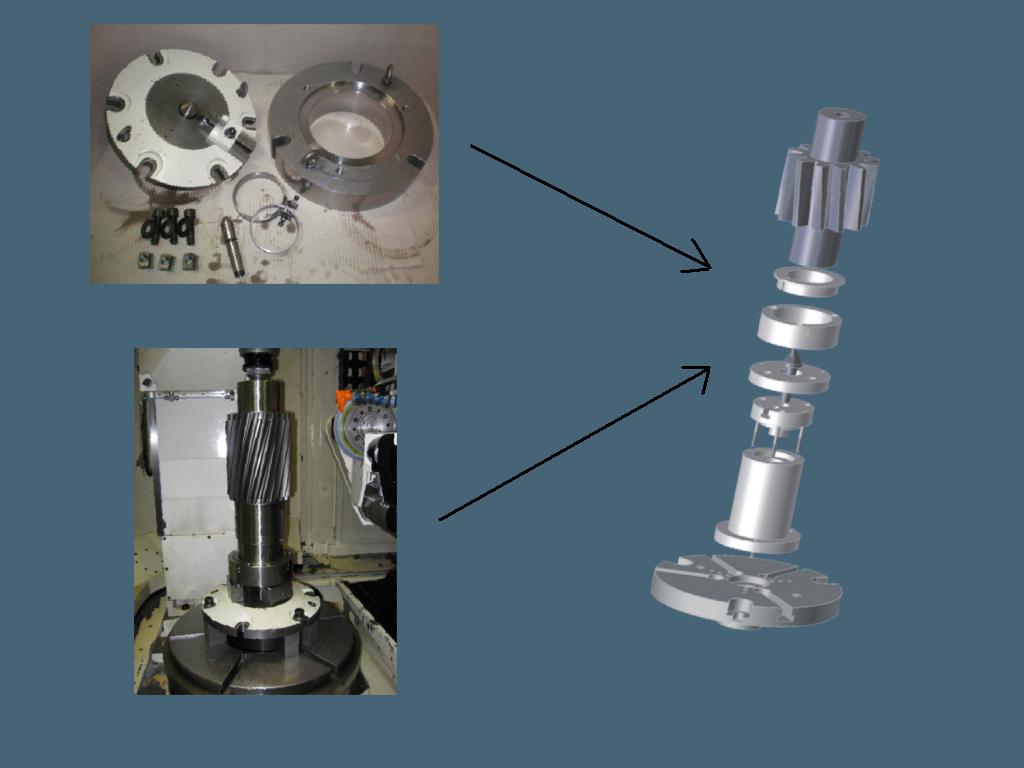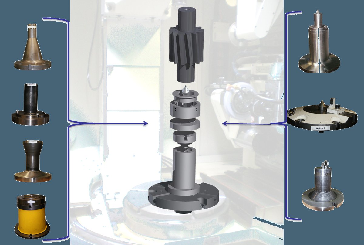 Die Universalaufnahme ermöglicht das Spannen von Zahnrädern und Ritzelwellen
